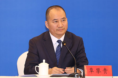 省委宣传部新闻发布处处长覃攀贵主持新闻发布会