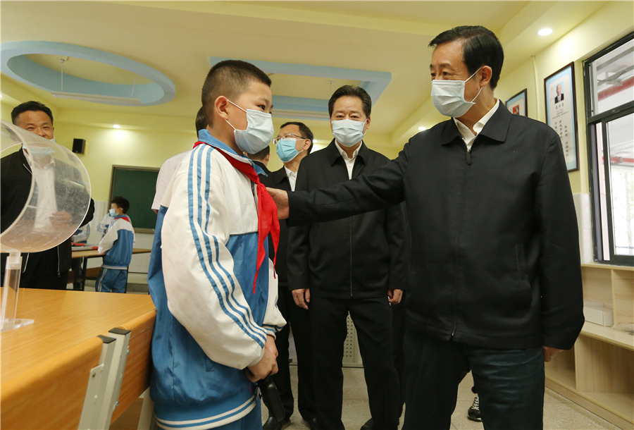 5月9日,许达哲在瑞塔铺镇考察桑植县芙蓉学校建设情况。