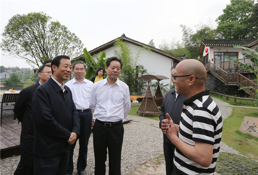 5月9日,许达哲在武陵源区考察水木潇湘民俗客栈。