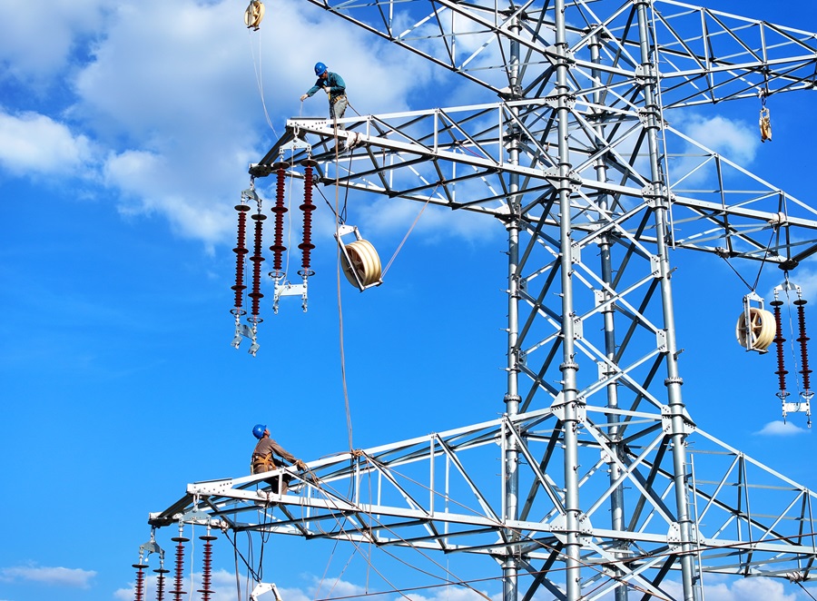 10月3日,衡阳市雁峰区岳屏镇,施工人员在真武—麻塘220千伏线路改造工程项目进行架线作业。该项目部员工节日坚守岗位,抢抓进度。曹正平 江志文 摄影报道