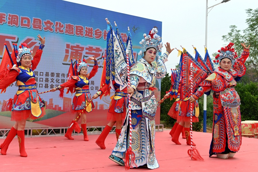 10月5日,洞口县南泥园艺场,演员在表演文艺节目。国庆中秋假期,该县组织文艺工作者深入乡村开展送戏下乡演出活动,丰富群众假期文化生活。滕治中 摄(湖南图片库)