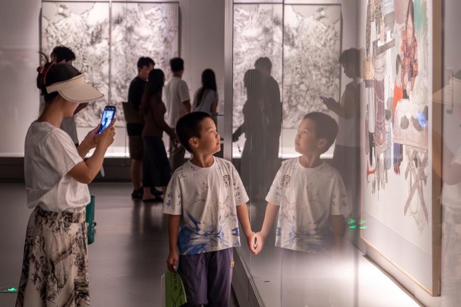 10月5日,游客在湖南美术馆参观。国庆中秋假期,不少市民和游客选择到访各类博物馆、美术馆,在文化的浸润中度过假期。湖南日报全媒体记者 童臻熙 摄