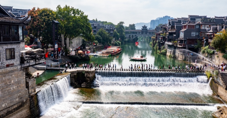 10月5日,游客在吉首市乾州古城休闲游玩。刘振军 摄(湖南图片库)