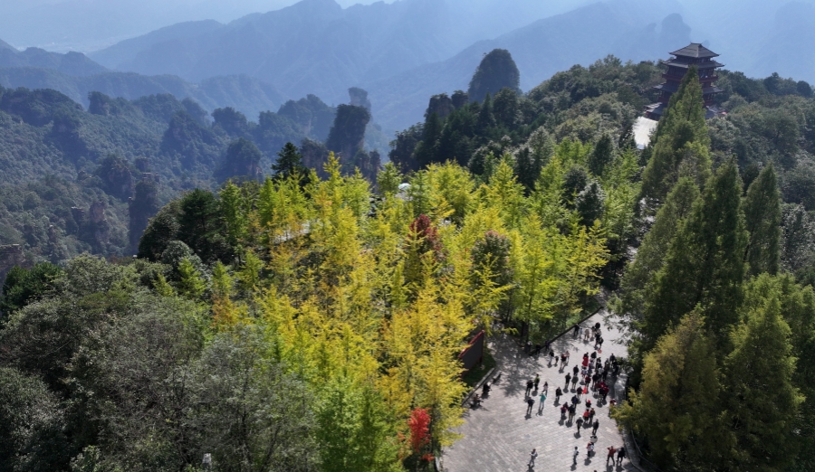 10月23日,游客在张家界国家森林公园天子山景区游览。深秋时节,多姿多彩的天子山、宝峰湖等景区,吸引众多游客前来观赏。当地文旅部门结合节气特色推出生态康养等主题线路,为游客提供丰富多样的秋季旅游体验。 吴勇兵 摄(湖南图片库)