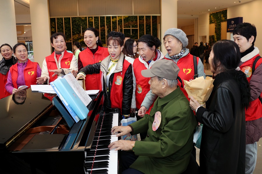 12月5日,金秋志愿者与老人共同引吭高歌。