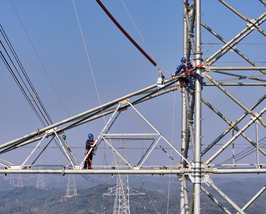 12月17日,长沙县高桥镇,电力工人在1000千伏荆潇线的百米铁塔上加装防风偏阻拦绝缘子。当天,国网湖南超高压输电公司利用线路停电检修期,实施防风偏改造工程。通过加装防风偏绝缘子等创新措施,显著提升线路抗风能力。此次工程是国内首次针对1000千伏特高压交流线路开展的专项防风偏治理,标志着我国在提升特高压线路抗风能力方面取得了重要技术突破。 湖南日报全媒体记者 童迪 孟姣燕 见习记者 陈娟 摄影报道