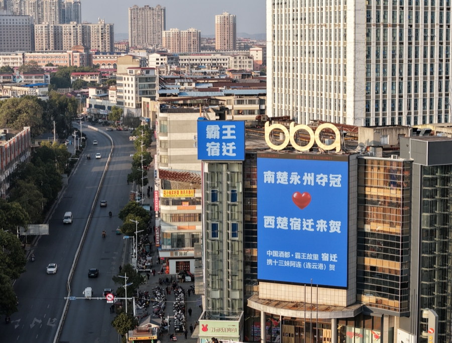 连日来,永州市城区的立柱广告牌、户外电子屏被江苏南京、苏州等地网友“霸屏”,他们登出祝贺永州队夺得湘超冠军的各种祝福语,引发众人关注、点赞。组图为1月7日永州街头即景。湖南日报全媒体记者 郭立亮 通讯员 雷中祥 摄影报道
