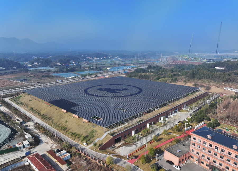 1月7日,俯瞰湖南湘江新区梅溪湖(雷锋)水质净化厂,现代化设计与科技感扑面而来。该厂采用半地下建设模式,构建“地上光伏发电+开放式花园+地下污水处理”的环保体系。经处理后的水质达到地表准Ⅳ类标准,部分中水由厂区和市政回收利用,其余经配套人工湿地净化后注入龙王港,成为河道重要的生态补水来源。 湖南日报全媒体记者 童迪 摄