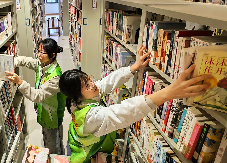 1月29日,嘉禾县图书馆,大学生志愿者正忙着整理图书。寒假期间,该县众多返乡大学生积极参与各类社会实践和志愿服务,在服务社会中学习知识、提升能力。黄春涛 摄