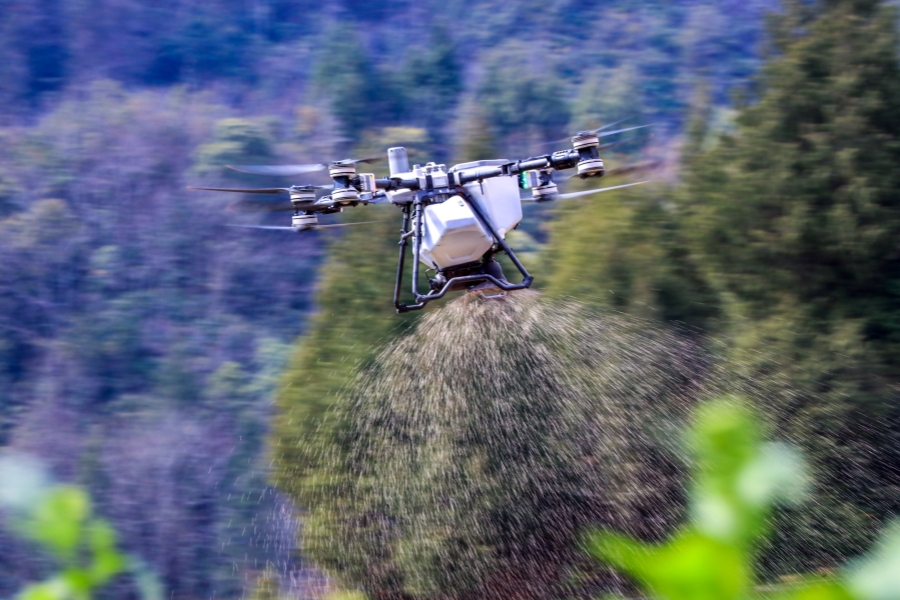 3月4日,龙山县茅坪乡水沙坪村,植保无人机在百合田里开展施肥作业。曾祥辉 摄(湖南图片库)