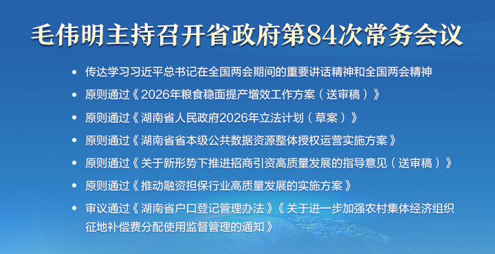 毛伟明主持省政府第84次常务会议 传达学习全国两会精神 部署粮食生产、立法计划、数据等工作
