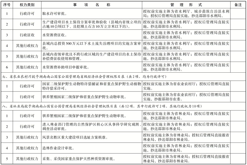 附件:湖南南山国家公园管理局行政权力清单(试行)