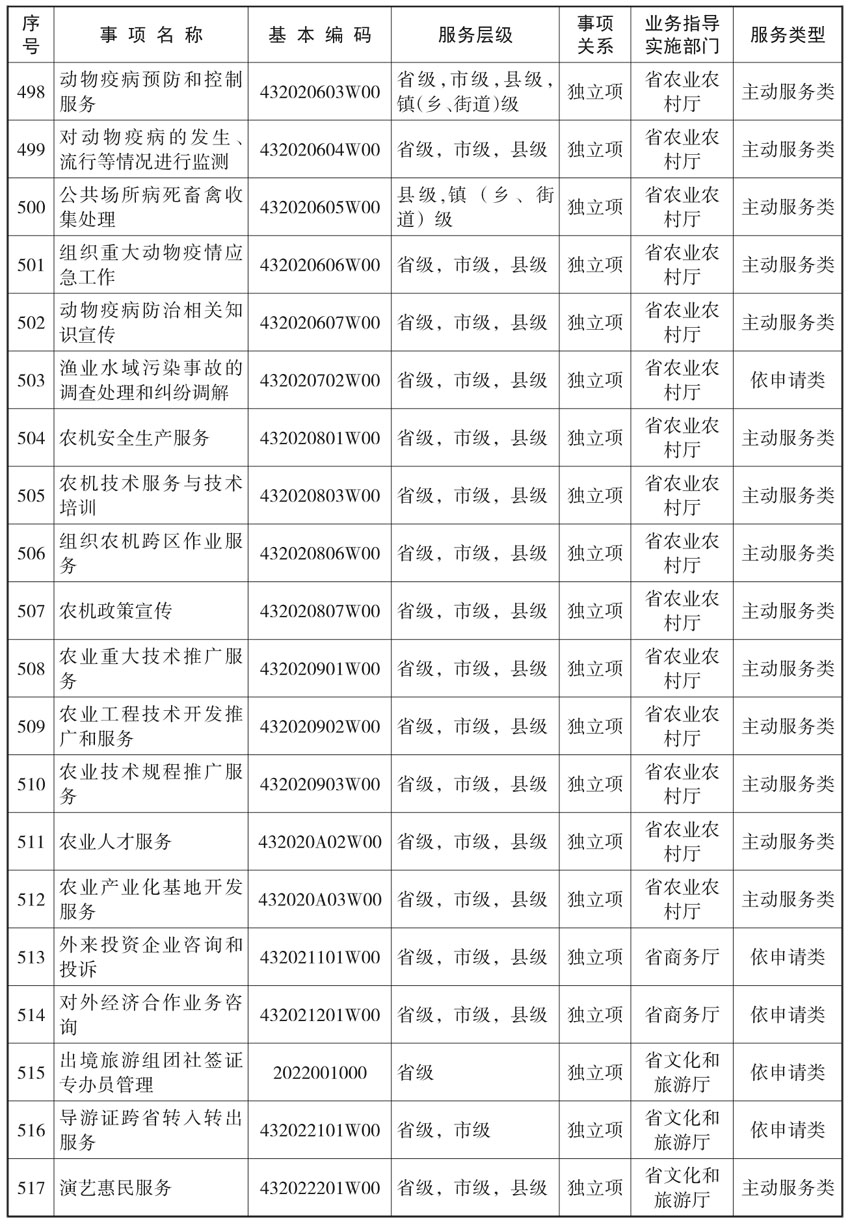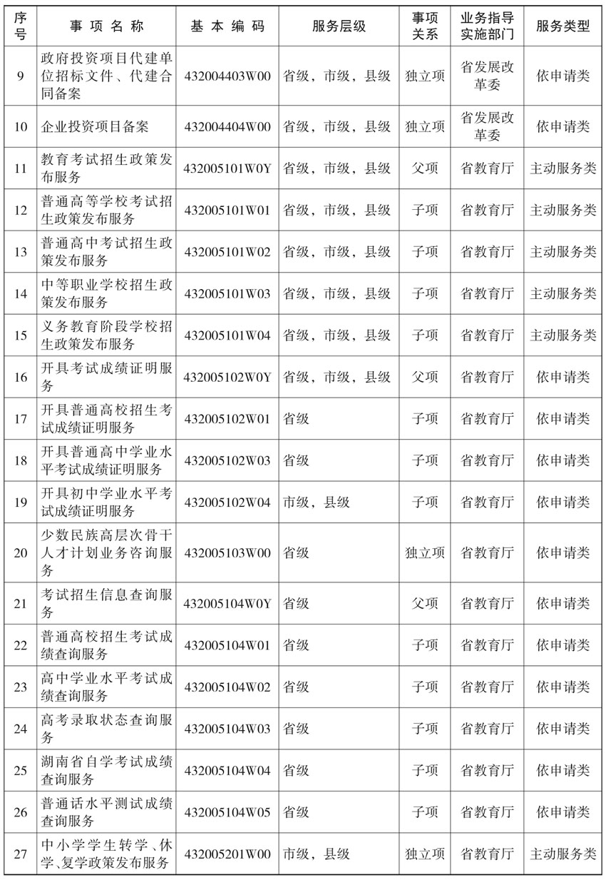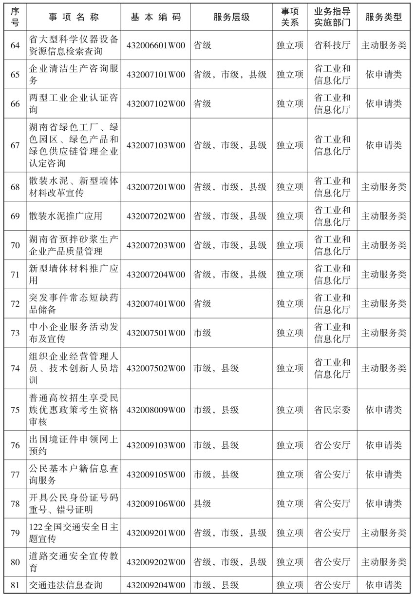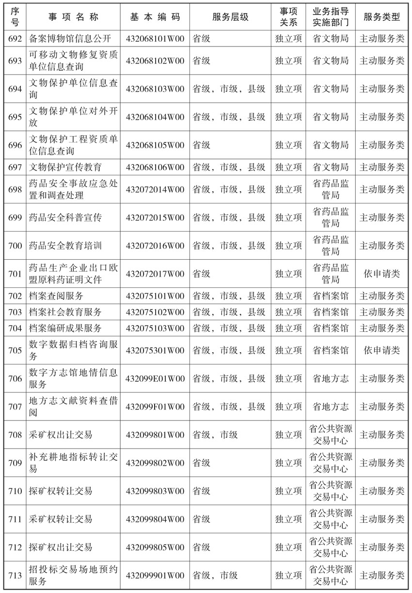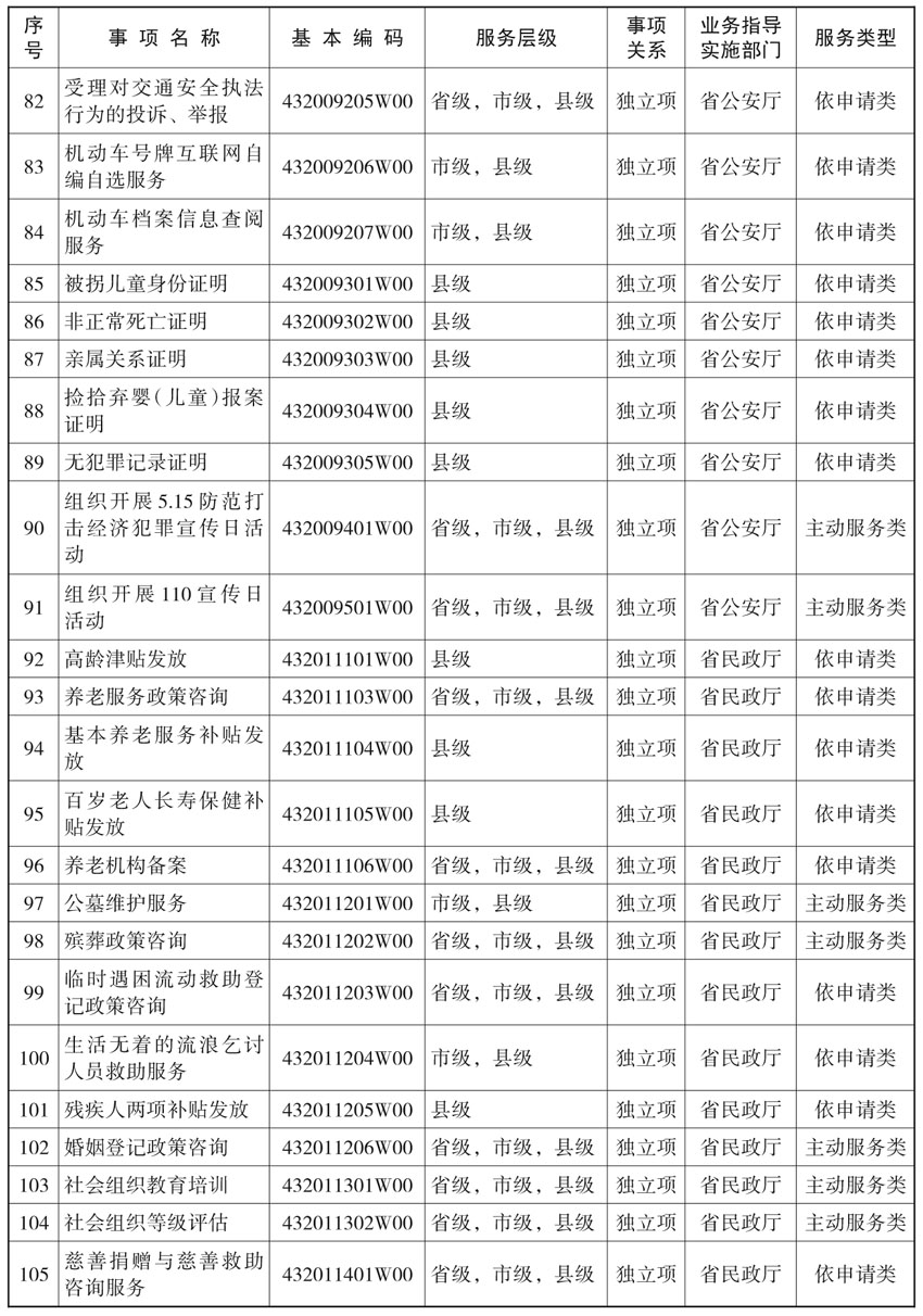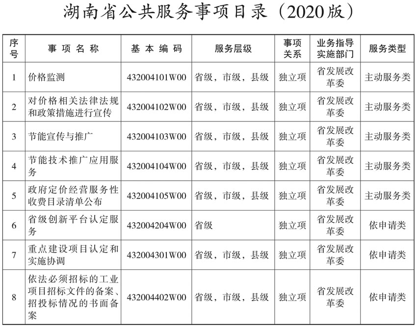 为更好地便利企业和群众办事,实现公共服务事项在省、市、县、乡(镇)、村(社区)同一标准、规范服务,为“一网通办”奠定基础,经省人民政府同意,现将《湖南省公共服务事项目录(2020版)》印发给你们,请结合实际,认真组织实施。