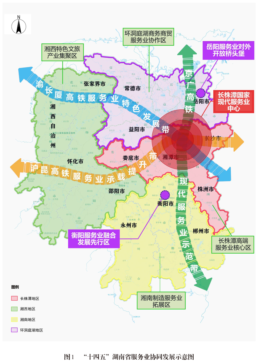 打造长株潭国家现代服务业中心。大力推动长株潭一体化发展,以长株潭三市为中心,统筹岳阳、常德、益阳、娄底、衡阳5市联动,强化科技服务、信息服务、现代金融、文化创意、商务服务等重点产业一体化布局,促进基础设施互联互通,推进医疗、教育、养老等公共服务共建共享,全面提升长株潭都市圈整体实力,着力打造立足中部、辐射西南、连通长江经济带和粤港澳大湾区的国际文化创意中心、国家科技创新中心、交通物流中心、区域现代金融中心等。