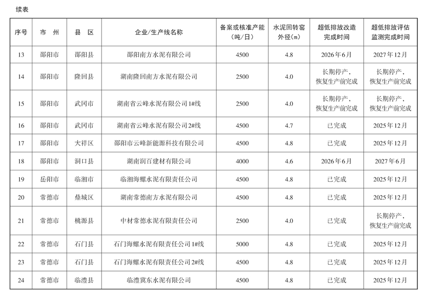 附件:1.湖南省水泥和焦化企业超低排放改造计划