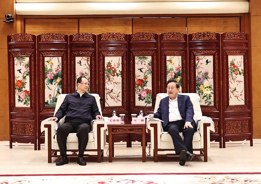 毛伟明感谢中国科协长期以来对湖南高质量发展的大力支持并简要介绍湖南科技创新情况。他说,近年来,湖南锚定打造具有核心竞争力的科技创新高地,着力抢占技术、产业、人才、平台“四个制高点”,主动对接国家战略科技力量,大力推进“4+4科创工程”,加快建设长沙全球研发中心城市,连续5年实施“十大技术攻关项目”、累计突破关键核心技术超180项;全省科技研发投入强度居中部第二,全省算力规模超12000PF,超算算力达223PF、居全国前列。中国科协在集聚高端科技人才、推动科技开放合作、加快算力高效利用等方面有着独特优势,希望中国科协一如既往地关心支持湖南,支持湖南率先打造统一的算力调度平台,在实施“人工智能+”行动上予以更多指导,帮助湖南深化对非科技交流、搭建国际科技合作平台,链接更多高端创新人才和资源要素,助力湖南建设成科技强国的重要战略支点。