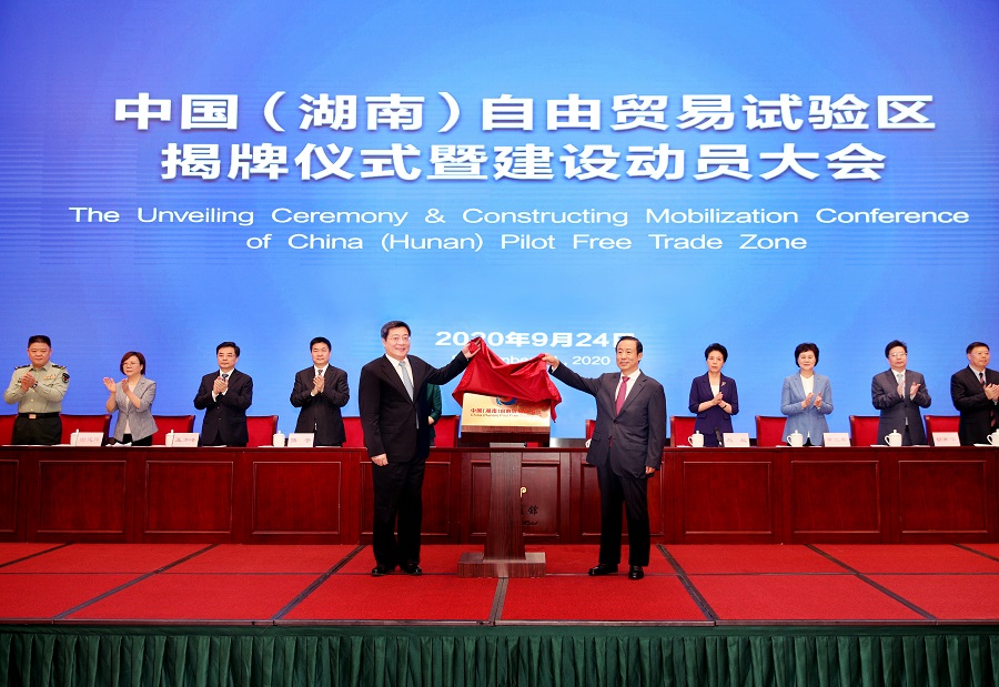 9月24日上午,中国(湖南)自由贸易试验区揭牌仪式暨建设动员大会在长沙举行。