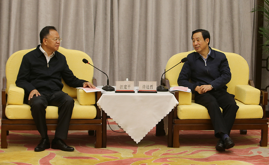 9月23日下午,省政府与中国铁道建筑集团有限公司在长沙举行会谈。省委副书记、省长许达哲,中国铁道建筑集团有限公司董事长汪建平出席。
