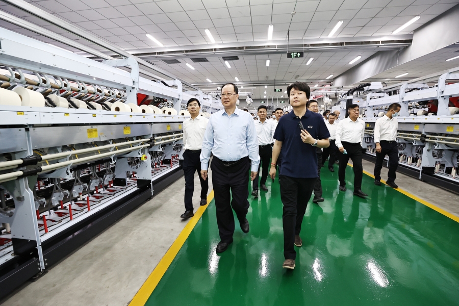 毛伟明在新疆睿弘纺织调研。