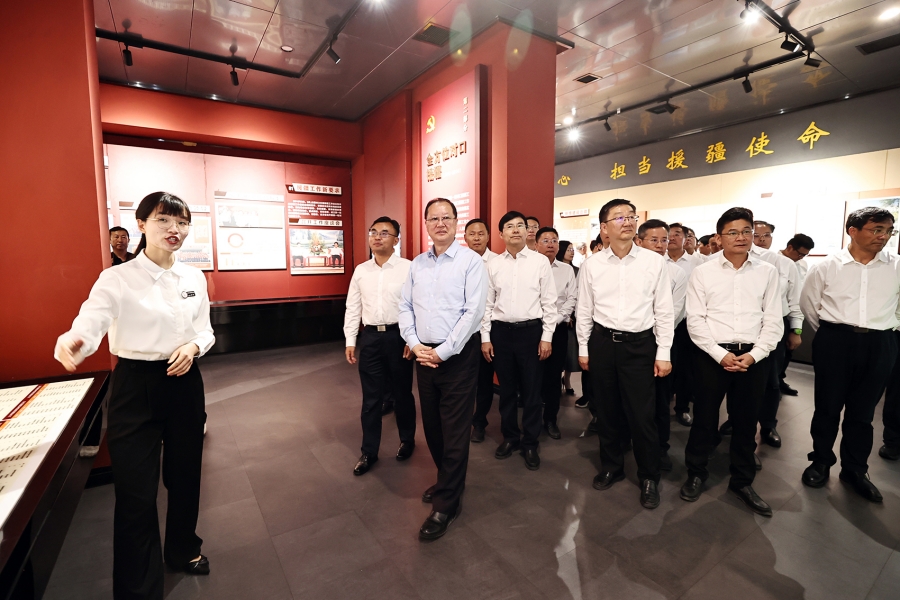 毛伟明在援疆前方指挥部参观历史陈列展。