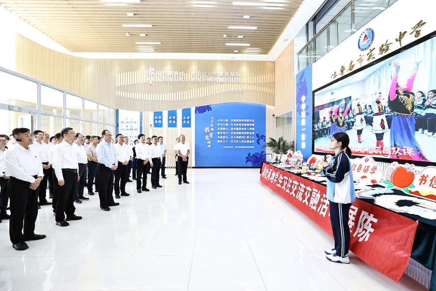 毛伟明在吐鲁番市实验中学调研。