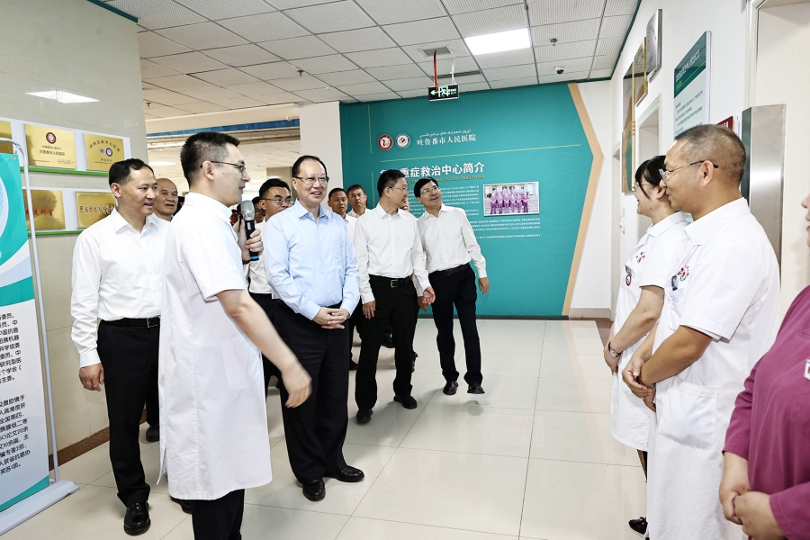 毛伟明在吐鲁番市人民医院调研。