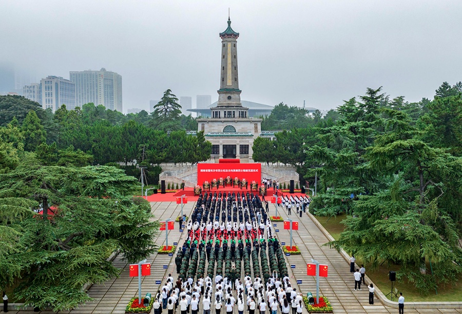 9月30日,湖南省暨长沙市烈士纪念日向英雄烈士敬献花篮仪式在湖南烈士公园举行。