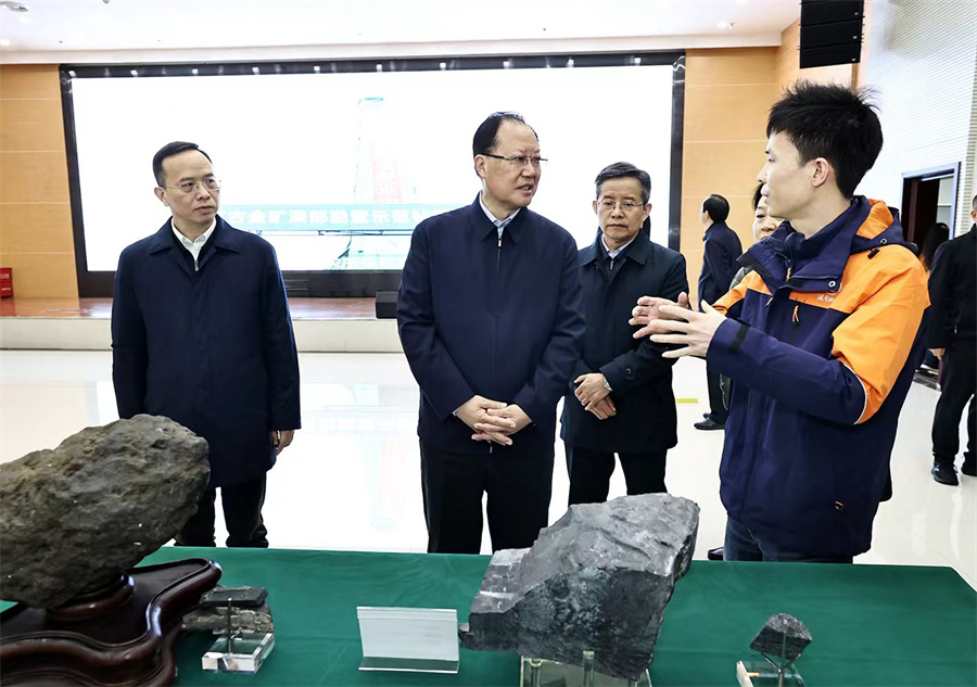 在省地质院,毛伟明一行走进湖南地质展厅,了解湖南矿产“家底”,查看省地灾监测预警与应急救援平台调度系统,视频连线平江万古金矿项目探矿现场。他指出,要开展多模块协同应急演练,以科技赋能地质灾害识别、预警和救援等,不断提升本质安全水平。