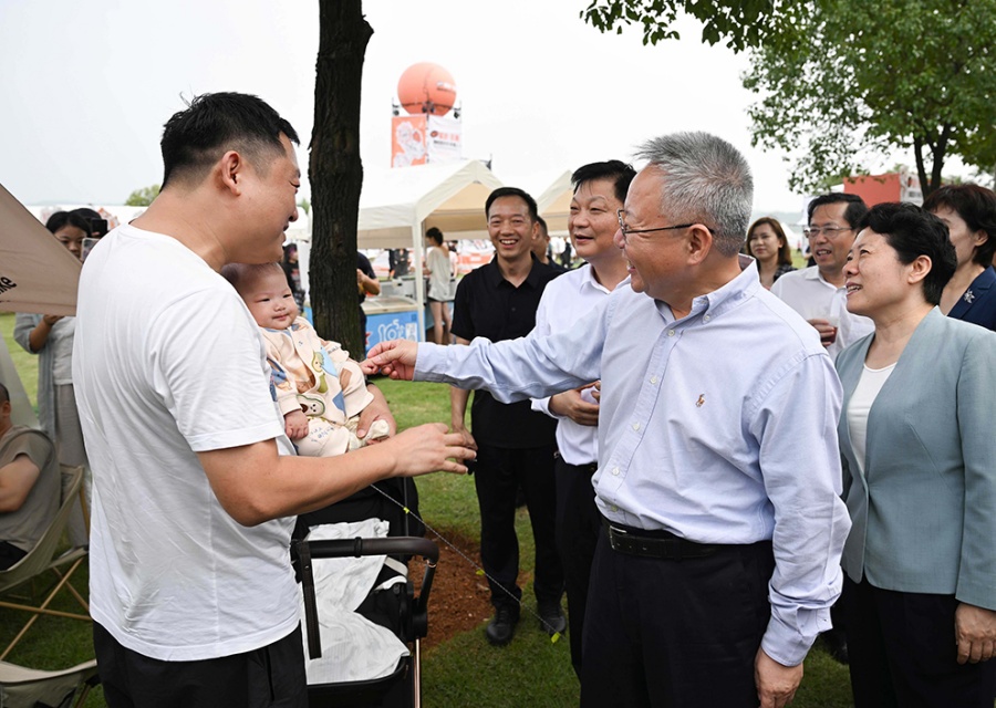 在松雅湖国家湿地公园,首届星沙-非洲咖啡嘉年华正在举行,为市民游客献上了一场啡香盛宴,也吸引了不少市民游客举家在公园里露营。沈晓明来到活动现场与商家、游客交流,并沿湖察看生态环境保护和发展生态旅游等情况,指出要鼓励举办更多主题丰富的群众性活动,促进文旅消费,提升城市品质;要用好公园的空间资源,科学布局建设公共文化体育设施,打造年轻人喜爱的城市调性。