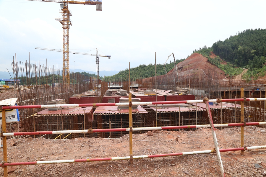 平江供水枢纽工程计划投资11.2亿元,通过利用黄金洞、尧塘、南江三大水源,建设长寿水厂,城关一、二水厂,南江水厂四大水厂,铺设150公里主管道,近期供水规模19.5万吨,远期供水规模26万吨(含北部供水枢纽工程),解决全县70万人饮水问题。图为2018年5月12日平江县供水枢纽工程长寿水厂施工现场。