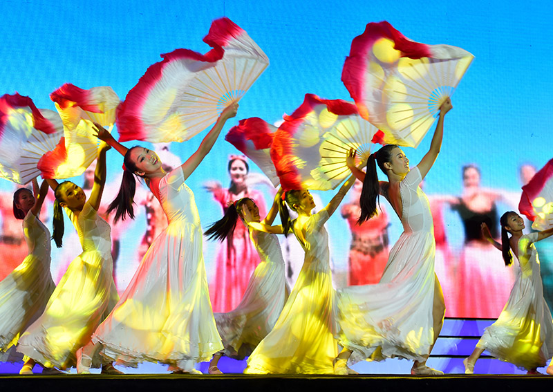北京市八一学校舞蹈团演员在“诗意中国——第十届中华世纪坛中秋诗会”上表演舞蹈《千年之约》(2018年9月17日摄)。新华社记者 罗晓光 摄