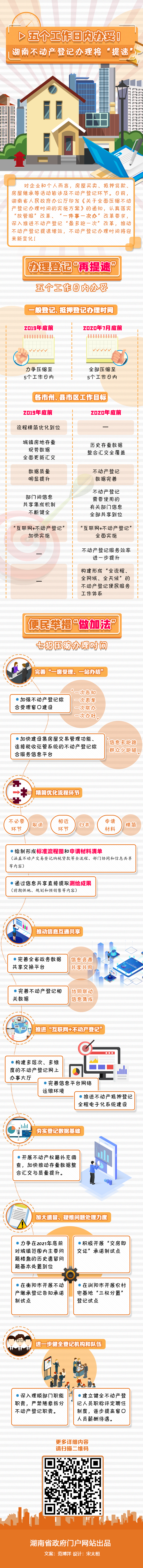 对企业和个人而言,房屋买卖、抵押贷款、房屋继承等活动皆涉及不动产登记环节。日前,湖南省人民政府办公厅印发《关于全面压缩不动产登记办理时间的实施方案》的通知,认真落实“放管服”改革、“一件事一次办”改革要求,深入推进不动产登记“最多跑一次”改革,推动不动产登记提速增效,不动产登记办理时间将迎来新变化!