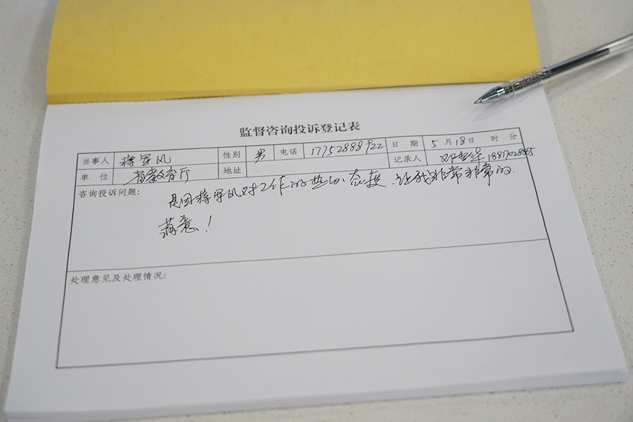 5月18日,收到补办好的证明书,邓雪华专程来大厅写下“好评”。