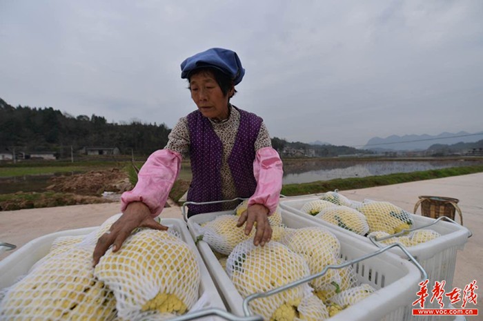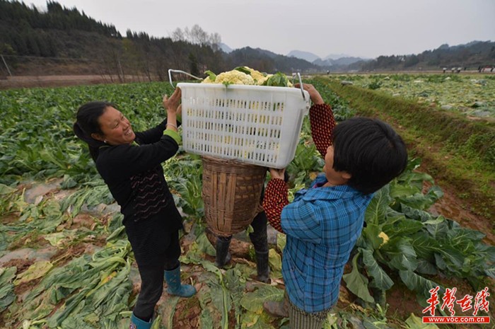 27日下午,年近60岁的熊瑞珍在摘完一筐松花菜后,肩扛到平地上,再将它们整齐打包……在张家界桑植县禾佳生态农业园,200余名像她一样的农业工人,通过稳定的工作收入过上了美好的生活。