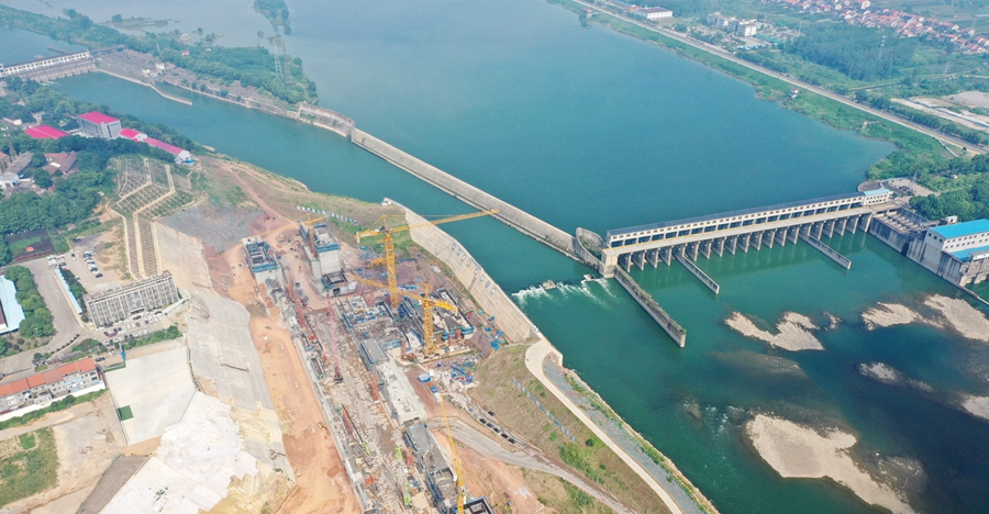 7月24日9时许,澧水航道艳洲枢纽工程工地,建设者在紧张施工。针对近期持续高温的情况,承建该项目的中交二航局科学调整作息时间,避开高温时段实施错时施工,确保安全生产,不误工期。