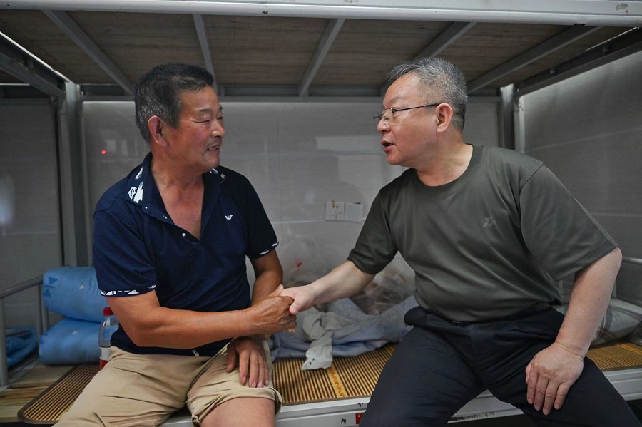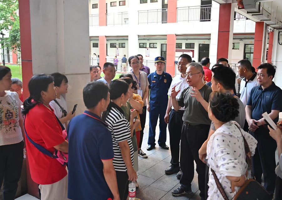 从团洲垸转移出来的群众不少被安置在华容县职业中专,沈晓明来到学校察看医疗救助和住宿条件,询问受灾群众生活保障等情况,转达党中央和习近平总书记对大家的亲切关怀,并要求各级各有关部门用心用情做好服务保障,帮助受灾群众解决实际困难。