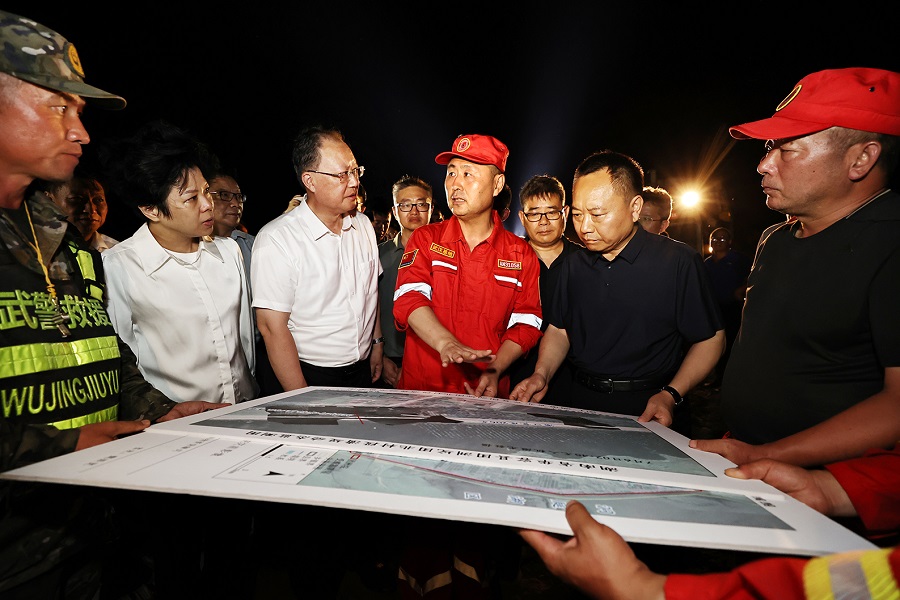 李国英、毛伟明一行还来到悦来河、新生间堤等,部署查看河堤加固除险工作。他们强调,要算好“时间账”,紧盯砂基堤防、险工险段等薄弱环节,迅速集结骨干人员、装备物资等力量,加快河堤加固、巡查除险等工作,严密防范其他险情和次生灾害发生。