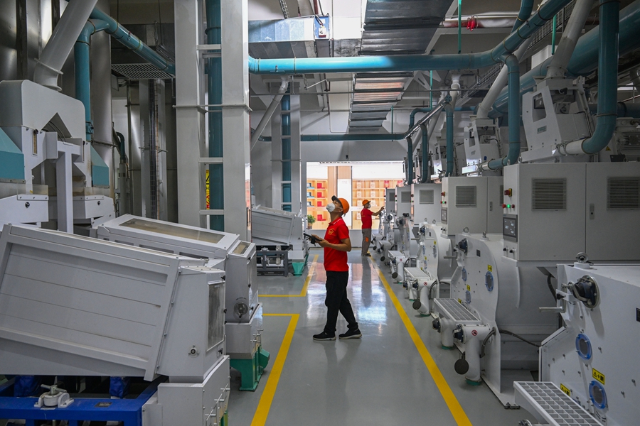 11月3日,位于安仁县农业产区园的湖南生平米业股份有限公司,工作人员通过数智化控制生产大米。该公司是国家级农业产业化重点龙头企业,今年新投产的30万吨大米生产线为全国工艺设备最先进、智能化程度最高的5G大米加工生产线,可实现稻米从除尘、去石、脱壳、色选、抛光到包装的全自动化,助力粮食产业提质增效。 湖南日报全媒体记者 郭立亮 通讯员 谭利炳 摄影报道