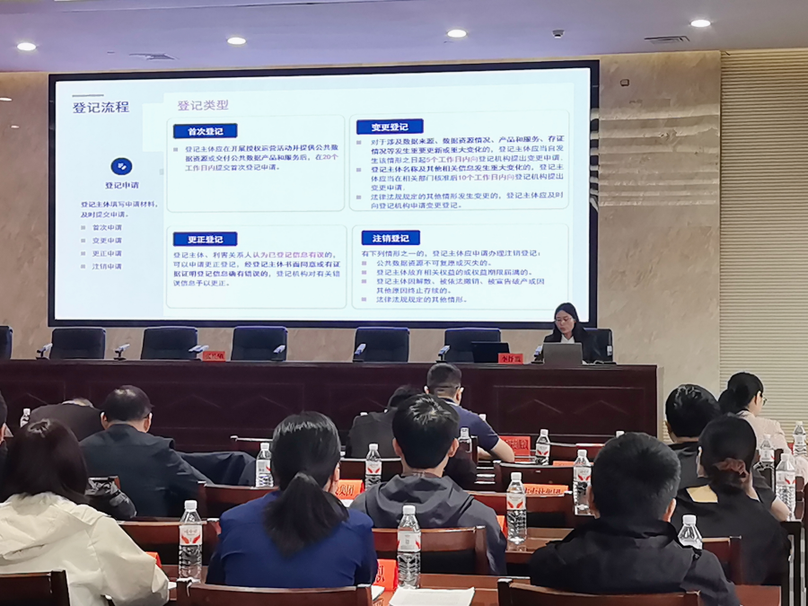 此次培训紧紧围绕国家和省级层面最新政策要求,阐述了公共数据资源登记在推动数据要素市场化配置中的重要作用,逐项详细介绍了登记范围、登记主体、登记流程、审核要点及平台功能,并通过案例演示讲解了系统操作规范与常见问题处置方式。本次培训将会促进怀化市有序推进公共数据资源登记工作。市直及中央、省在怀有关单位,各市县区数据局参加培训。