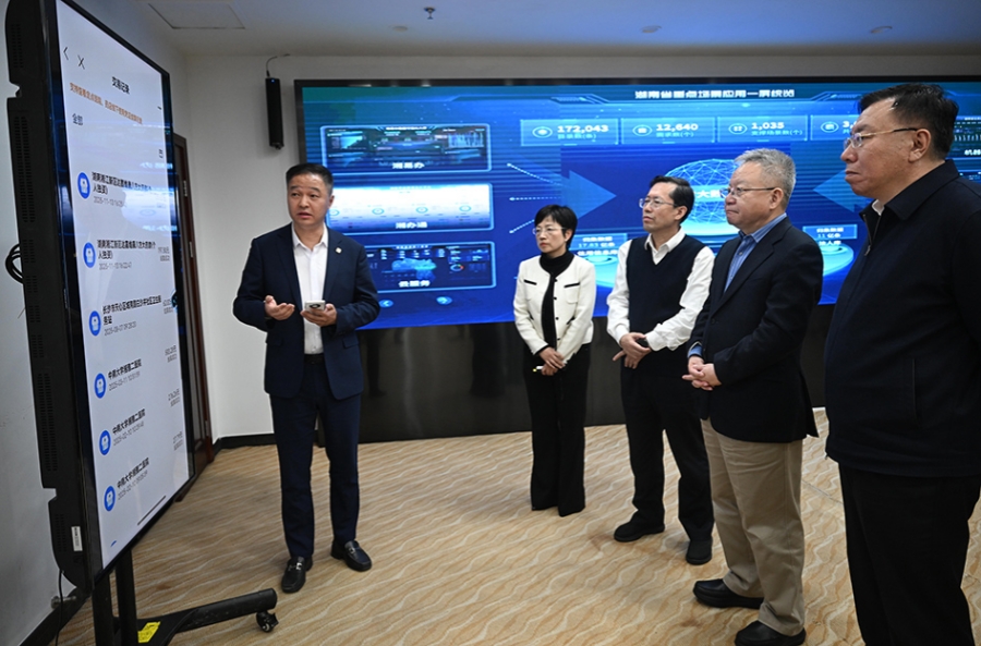 在省数据局,沈晓明观看“湘易办”功能和服务事项、省大数据总枢纽支撑重点应用情况演示,并主持召开座谈会听取省数据局工作情况汇报。他指出,近年来,省委、省政府积极推进数据要素市场化配置改革,大力推进数据归集和共享,数字湖南建设取得了新进展新成效。要在加强统筹联动上下功夫,以编制“十五五”数字湖南建设专项规划为契机,科学做好顶层设计,加强数字基础设施建设统筹,从源头上避免重复建设和资源浪费。要在提升政务服务水平上下功夫,加强数据归集共享与应用场景建设,进一步推动数据融合利用,完善数字政务统一运维与安全体系。要在推动数据工作改革创新上下功夫,推进湖南省国家数据要素综合试验区建设,加快数据市场建设,探索公共数据授权运营机制,走出一条具有湖南特色的数据治理和数字发展之路。要在加强自身建设上下功夫,进一步增强数字思维、数字技能,努力成为数字化建设方面的行家里手,加强党风廉政建设,涵养风清气正的政治生态。
