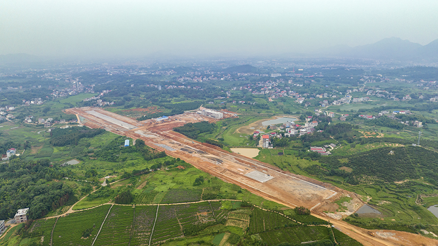 6月12日,娄底桥头河通用机场项目建设现场。该项目位于娄底市涟源市桥头河镇株木村,总投资2.93亿元,占地面积320亩,规划新建1条跑道、1条垂直联络道、地上三层航站航管综合楼及其他机场配套工程,机场建成之后,将有力促进娄底航空产业发展,进一步完善娄底综合交通运输体系建设。 吴永华 摄