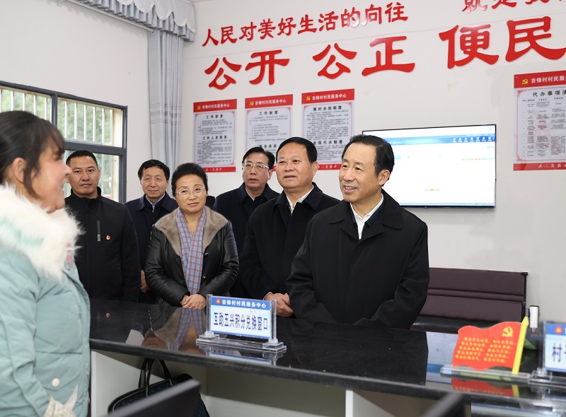 2020年12月6日至7日,省委书记许达哲在湘西土家族苗族自治州就推进脱贫攻坚与乡村振兴有效衔接开展调研。图为许达哲在永顺县灵溪镇吉锋村便民服务大厅走访。湖南日报记者 赵持 摄