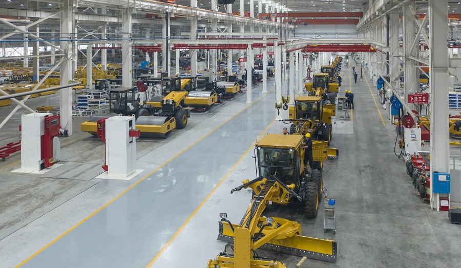 8月24日,娄底涟源市三一路机里,准备下线的平地机排列整齐。该工厂以工业互联网为依托,实现生产过程的全数字驱动,大幅提升生产效率,助力智能制造。湖南日报·新湖南客户端记者 辜鹏博 摄