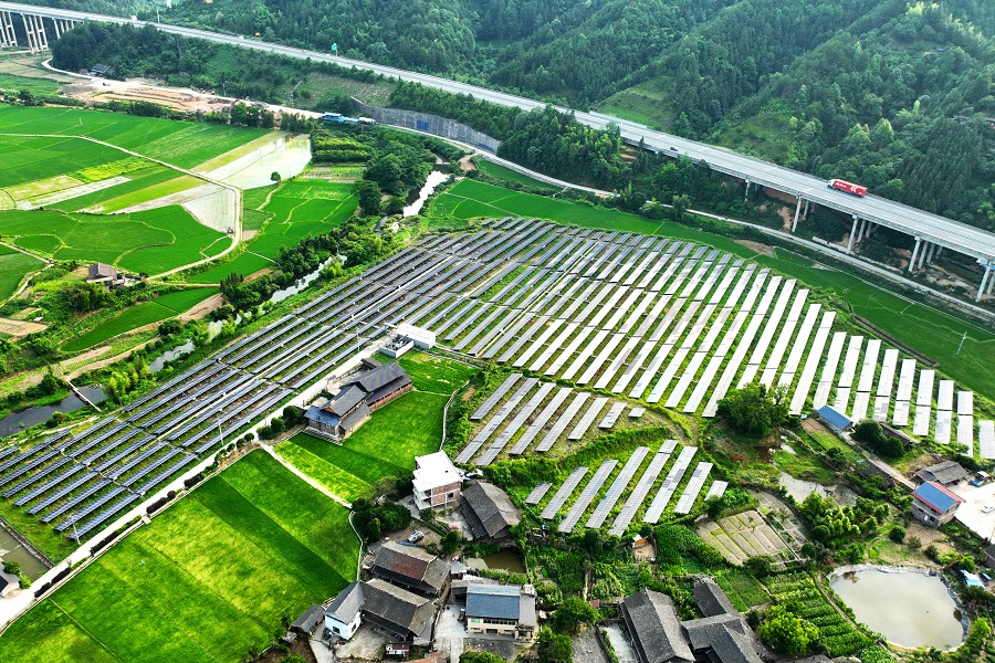 6月11日,通道侗族自治县溪口镇联团集中式光伏电站,一排排光伏发电板正源源不断地产生清洁电能。近年,该县因地制宜探索实施“光伏+农业+特困群众”的产业发展模式,建成联团、马家坝两座集中式光伏帮扶电站,对重残、重病等特困群众每户每年给予3000元的光伏分红补贴。李尚引 摄