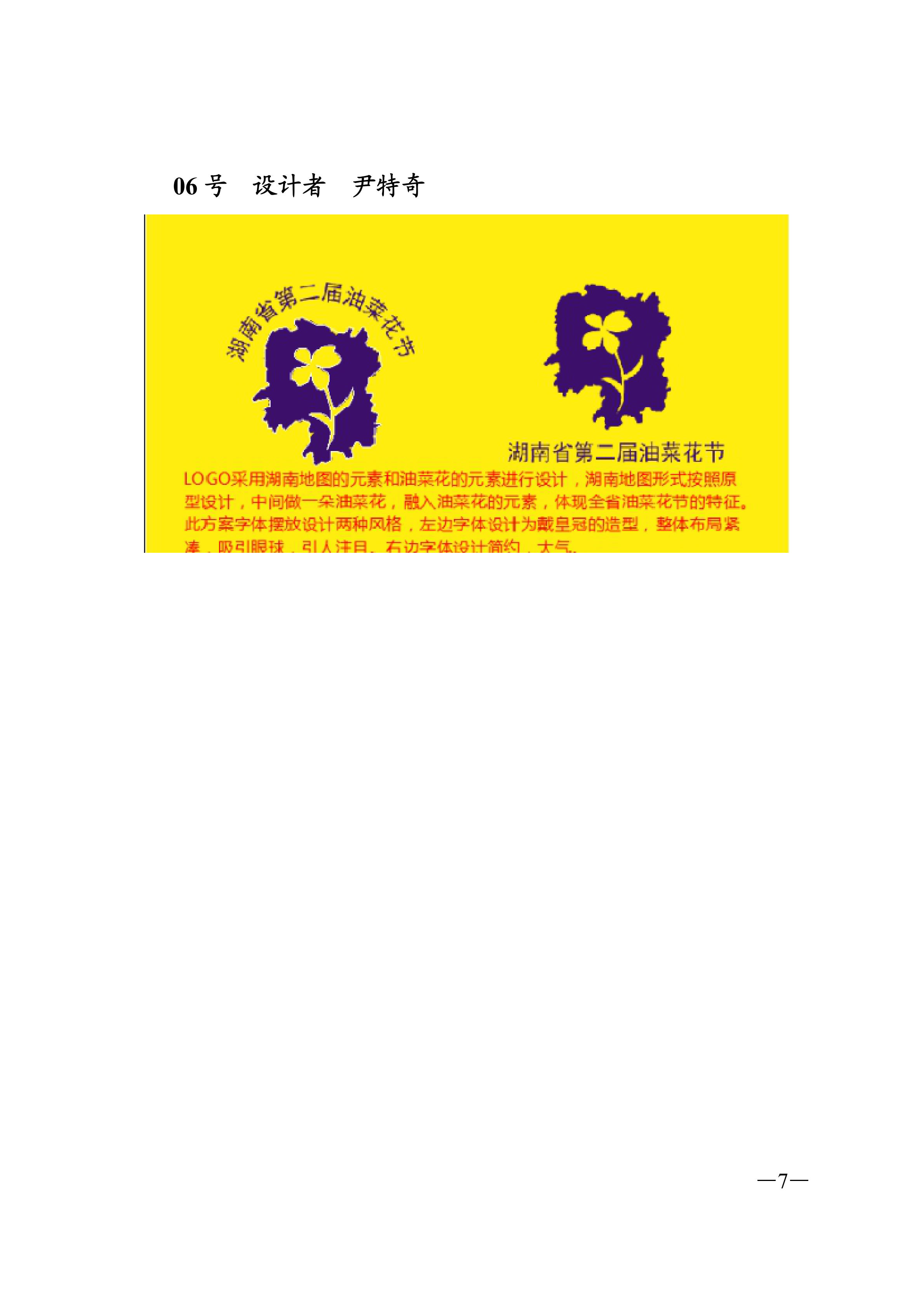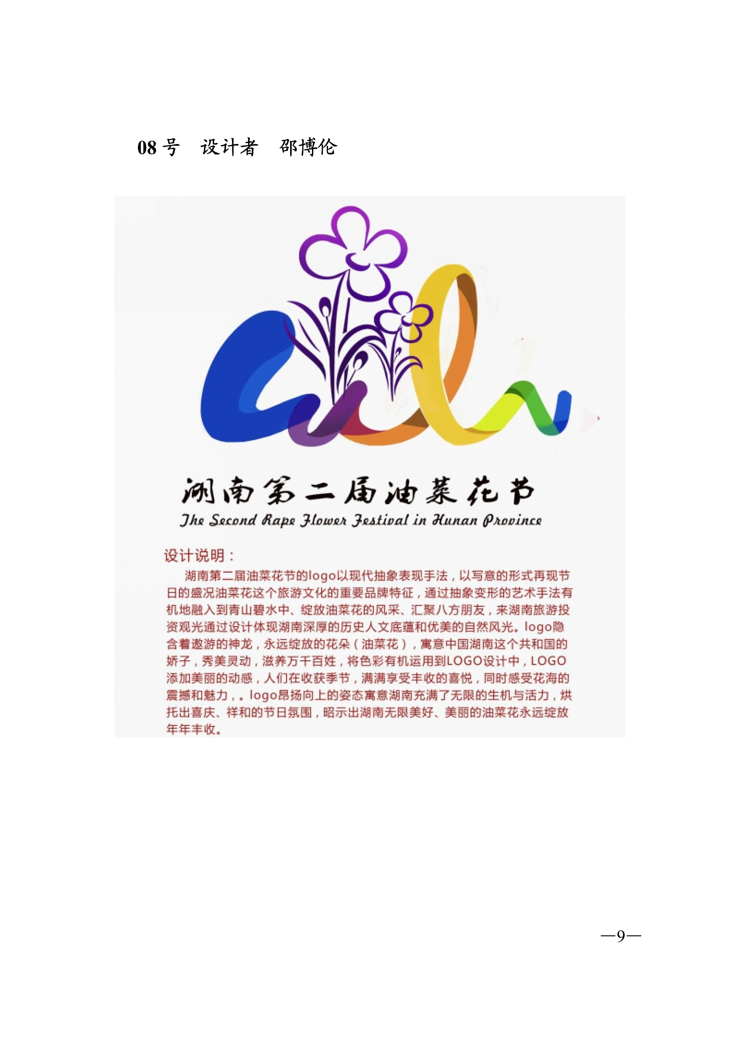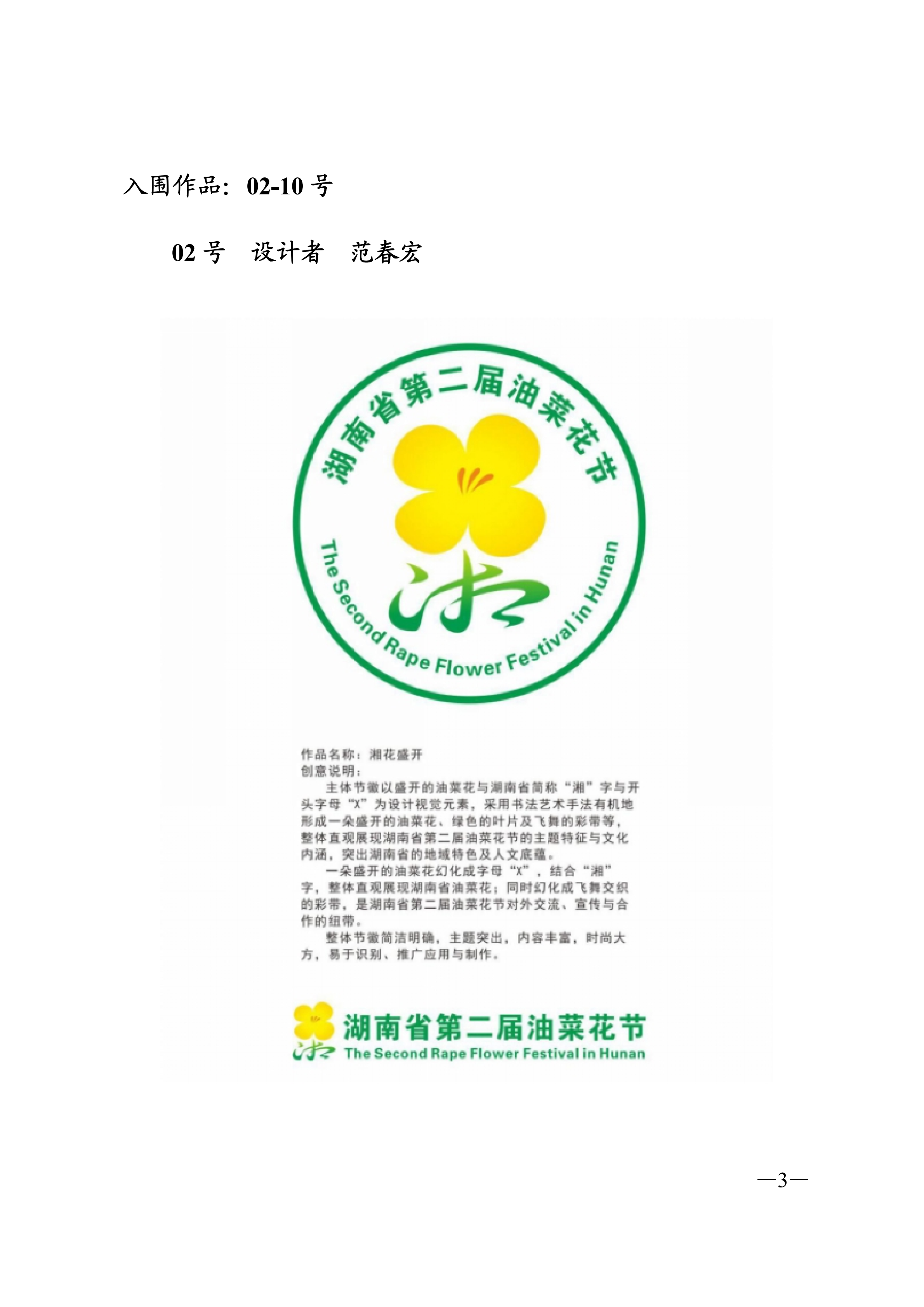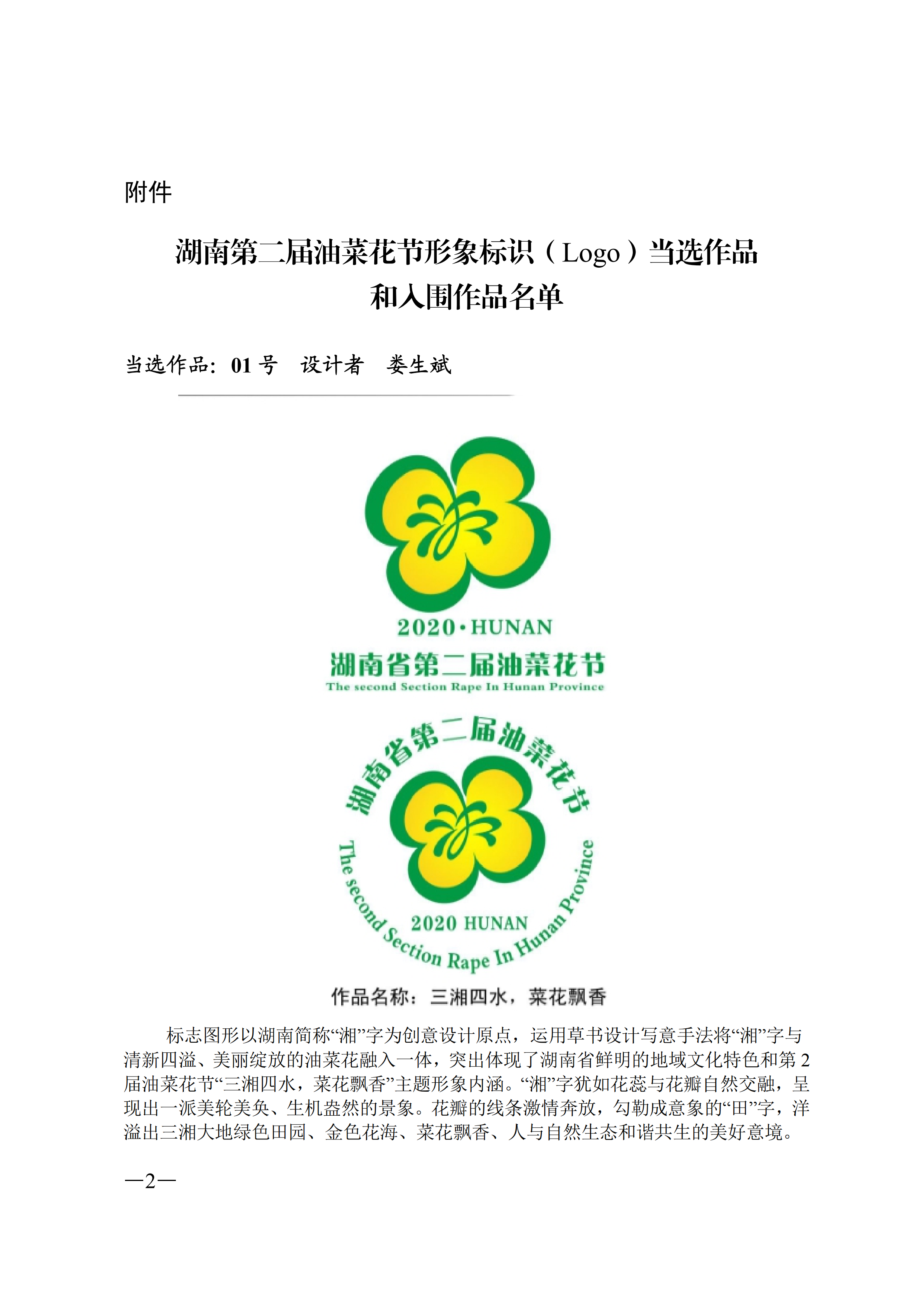 关于湖南省第二届油菜花节形象标识(Logo)评选结果的通报