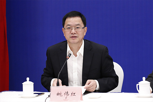 省委宣传部新闻发布处处长姚伟红主持新闻发布会