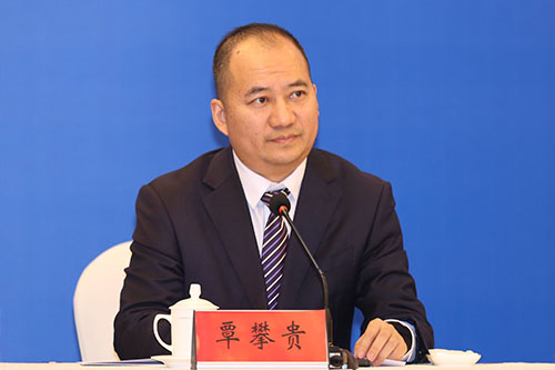 省委宣传部新闻发布处处长覃攀贵主持新闻发布会