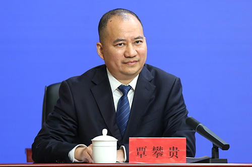 省委宣传部新闻发布处处长覃攀贵主持新闻发布会