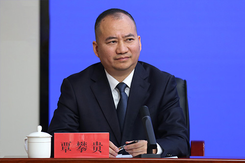 省委宣传部新闻发布处处长覃攀贵主持新闻发布会