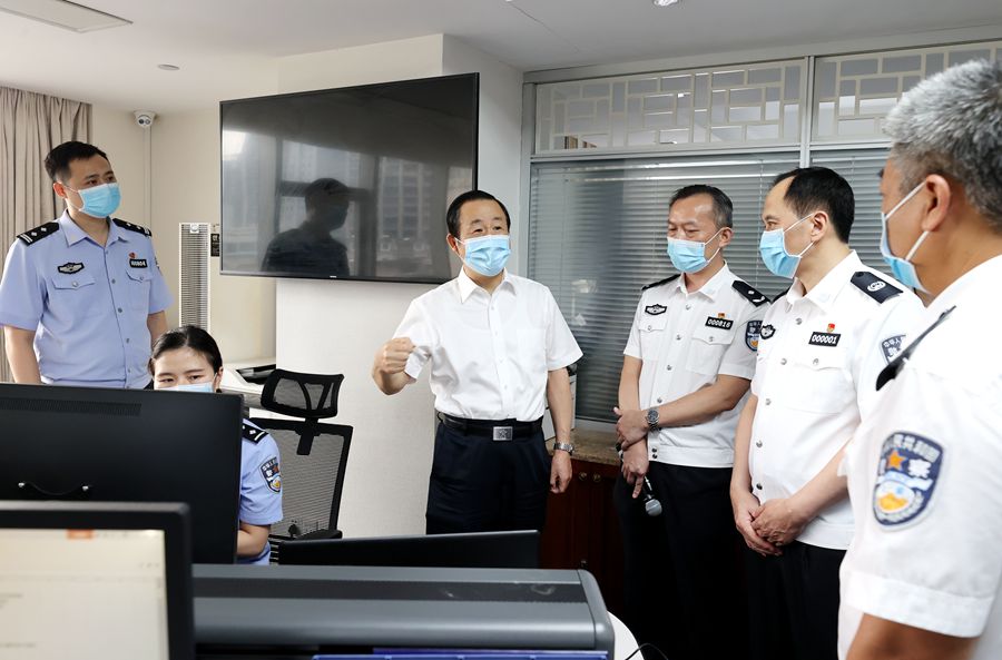8月6日下午,省委书记、省人大常委会主任、省委新冠肺炎疫情防控工作领导小组第一组长许达哲来到省公安厅检查调度疫情防控工作。他强调,要以习近平总书记关于疫情防控的重要讲话指示精神为指导,提高政治站位,克服麻痹思想,增强与时间赛跑的责任感、紧迫感,千方百计、马不停蹄地提高大数据支撑疫情防控的能力水平,夯实打赢疫情防控硬仗的重要基础。